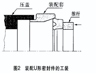 裝配唇形密封件時(shí)沒有使用專用工具,或長(zhǎng)期懸掛在鐵絲上存放,均會(huì)造成唇形密封件損壞而漏油。圖2為U形密封件從唇部安裝時(shí)采用的工裝,它能地避免唇形密封件的唇頂被損傷。當(dāng)配合面的倒角不當(dāng)時(shí),可在軸肩倒150~30°角,以避免唇形密封件損傷;如果因結(jié)構(gòu)限制不能倒角時(shí),應(yīng)在裝配時(shí)使用專用套筒等工裝。顆粒性雜質(zhì)進(jìn)入系統(tǒng)后,附著在唇形密封件的配合面上,會(huì)造成唇形密封件受損。應(yīng)按時(shí)更換油,定期清潔和更換濾油器,以避免唇形密封件劃傷。