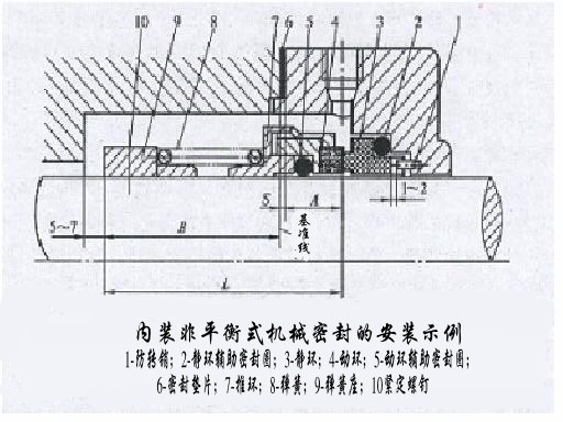 機(jī)械密封件的安裝順序,在安裝準(zhǔn)備工作完成后,就可按一定順序?qū)嵤┌惭b,完成靜止部件在端蓋內(nèi)安裝和旋轉(zhuǎn)部件在軸上的安裝,最后完成密封的總體組合安裝。以圖1所示的離心泵用單端面內(nèi)裝非平衡式機(jī)械密封為例,其安裝順序介紹如下:
