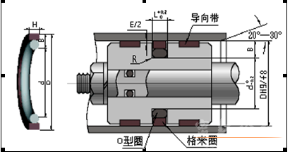 孔用組合密封圈由O型圈和耐磨環(huán)組成(見圖1)。