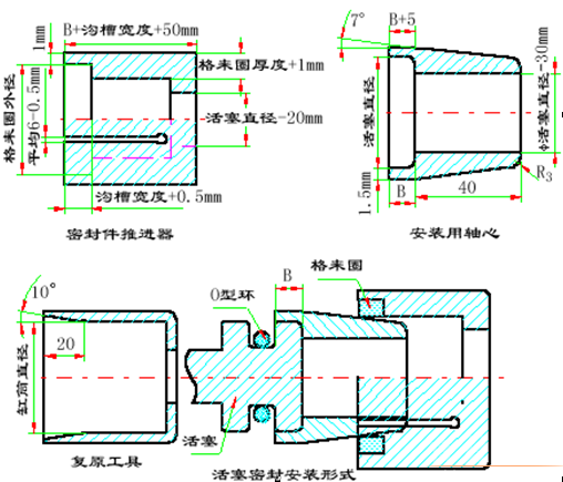 下述安裝程序適用于格萊圈密封件,對(duì)整體式密封裝置,建議使用圖示安裝工具