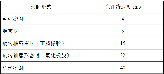 接觸式密封圈產(chǎn)品的允許速度因滑動(dòng)表面粗糙度、精度、潤滑、使用溫度等不同而不同,參考值如下表所示: